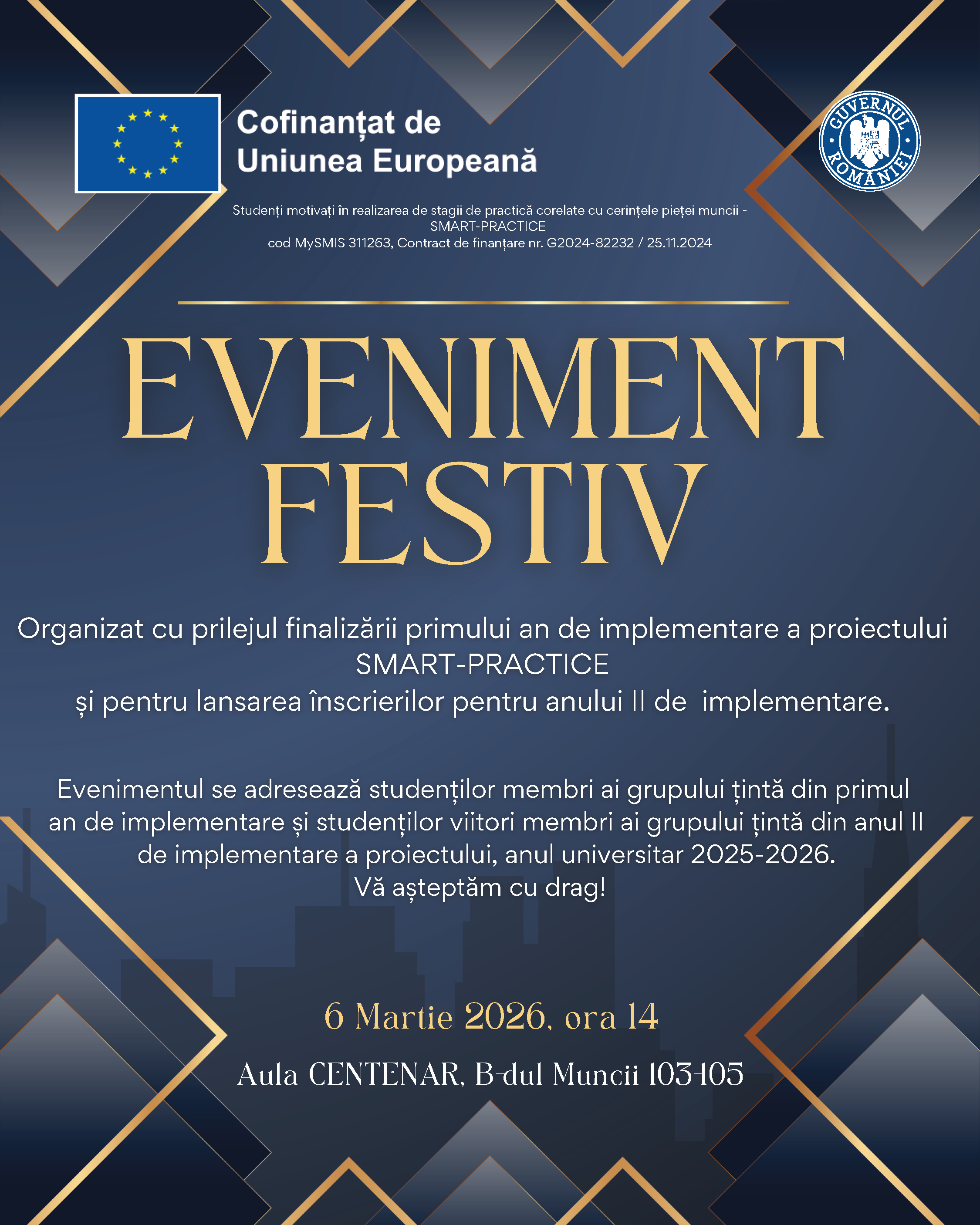Eveniment festiv – Proiect SMART-PRACTICE - 6 martie 2026 ora 14 Aula CENTENAR